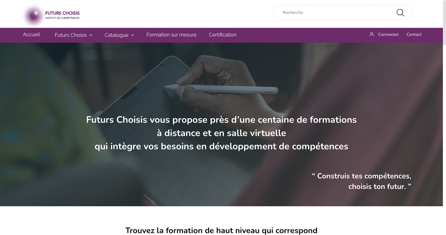 Plateforme de formation en ligne offrant des cours certifiants dans divers domaines pour le développement professionnel.