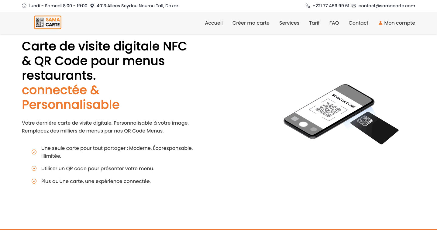 Solution de cartes de visite digitales avec QR code et menus de restaurant interactifs pour une expérience moderne.