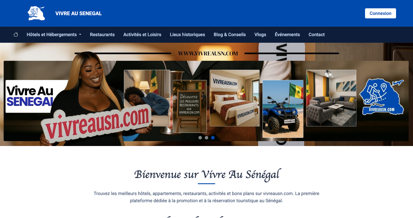Plateforme complète de découverte du Sénégal avec annuaires d'hôtels, restaurants, activités et événements.